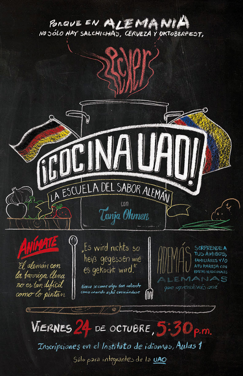Poster design for german learning, cultural interchange and cooking meetings in Cali, Colombia.
