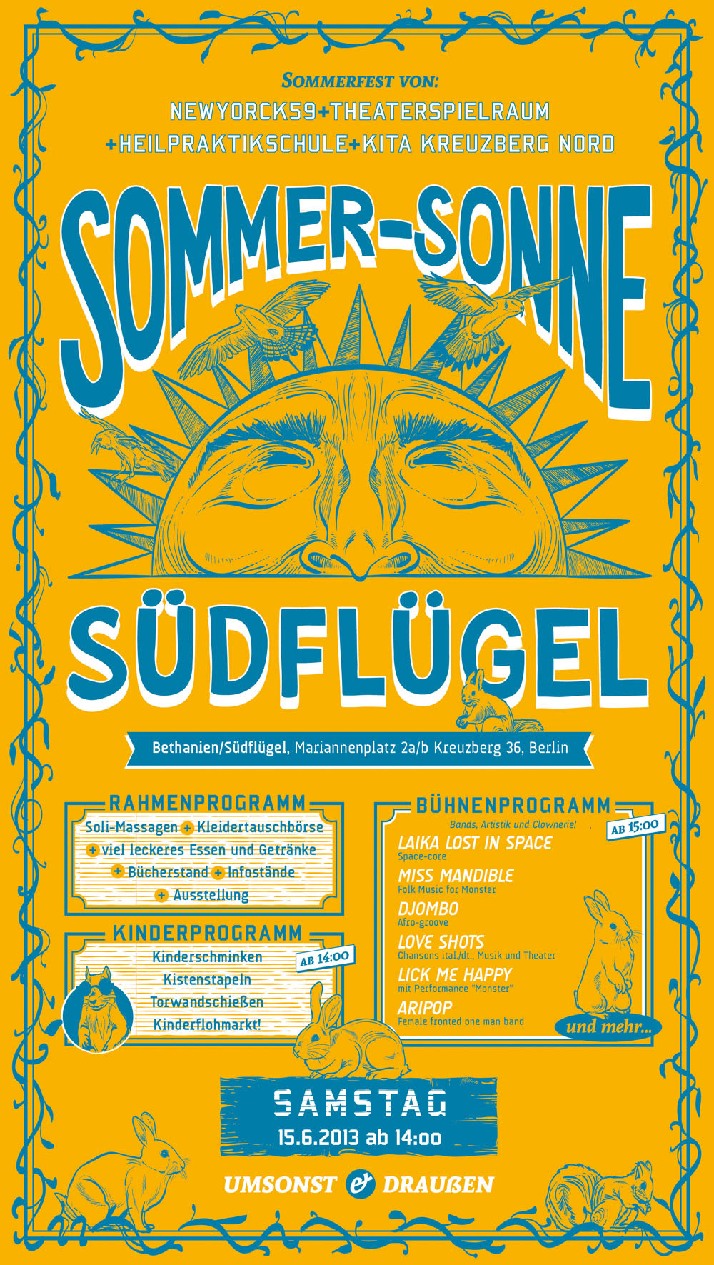 Collaboration poster for a summer festival of the Bethanienhaus in Kreuzberg, Berlin.